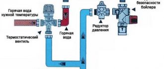 In the first circuit, water passes through, heating to the desired temperature, usually 40–50 degrees Celsius. Then comes the launch of the rod, which opens cold streams of water. For the system to operate efficiently, a pump must be installed after the valve.